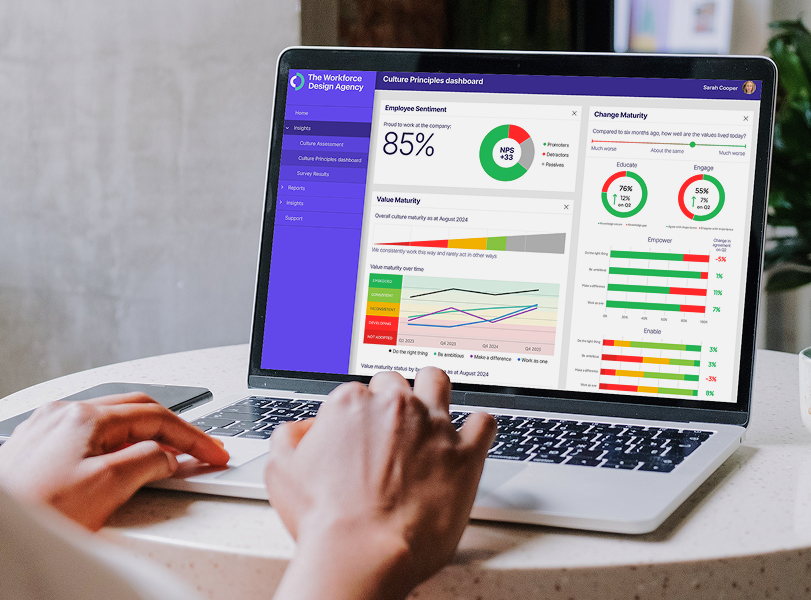 For some organisations, the dashboard becomes the measurement backbone for an existing transformation, people strategy or performance agenda. For others, it becomes the starting point for sharper decisions, showing where behaviours, systems and ways of working are helping performance, and where they are getting in the way.